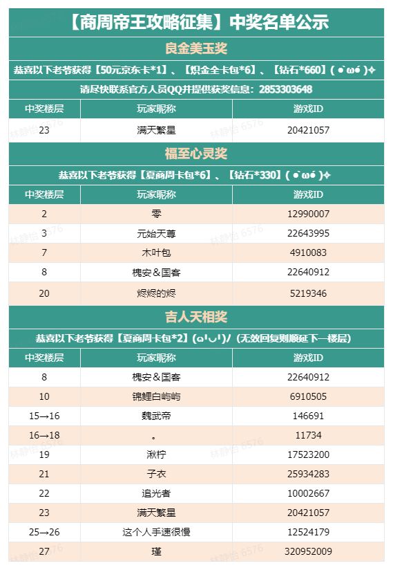 中了实物周边的老爷请添加官方人员QQ:2853303648,并附上您的昵称、地址及联系方式,以便我们尽快发奖~再次感谢!