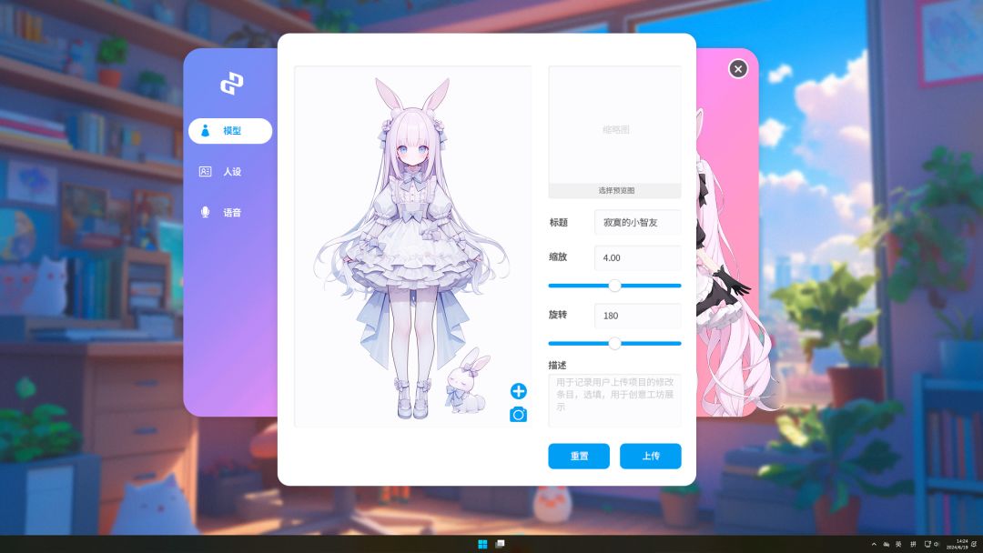 本次将开放玩家上传模型功能,人设、语音上传功能将会在后续开启。