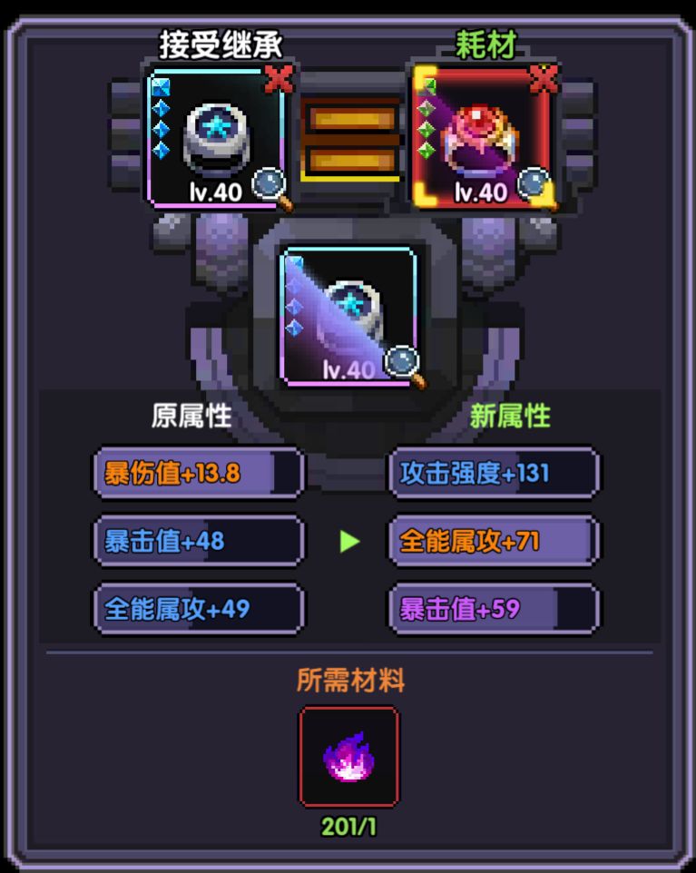 3.太古暗金在继承普通装备的的属性攻击时会变成全能属攻
