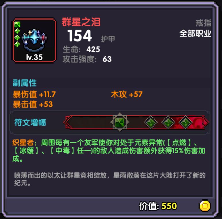 前期刷图的时候多留意这种装备,后期需要打属性的时候就能方便很多,否则就需要刷出来需要属性的老暗金来打上去,老暗金继承需要的材料是混沌暗金的五倍,有点亏