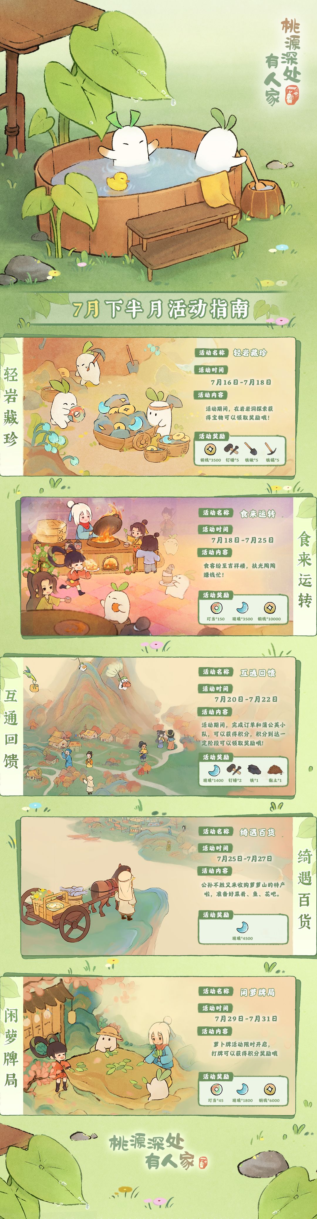 各位山民好呀!今日小花给大家准备了七月下半月的活动日历,山民可以收藏日历避免错过常驻活动萝!