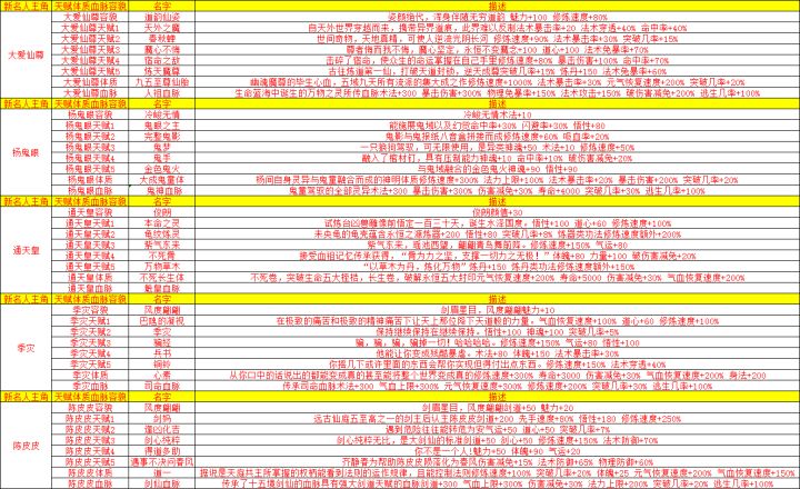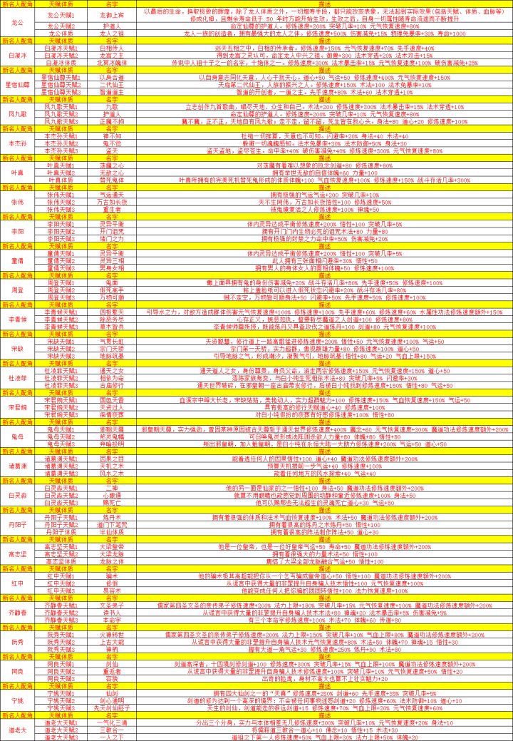 新版本更新的五大名人主角+二十五位配角容貌天赋体质血脉技能图鉴大赏