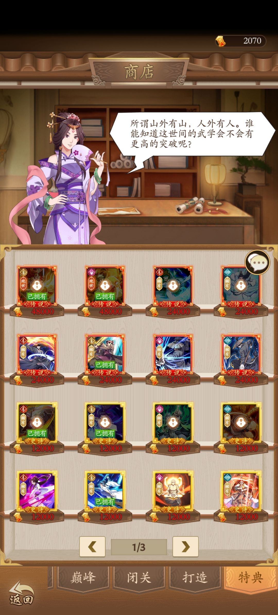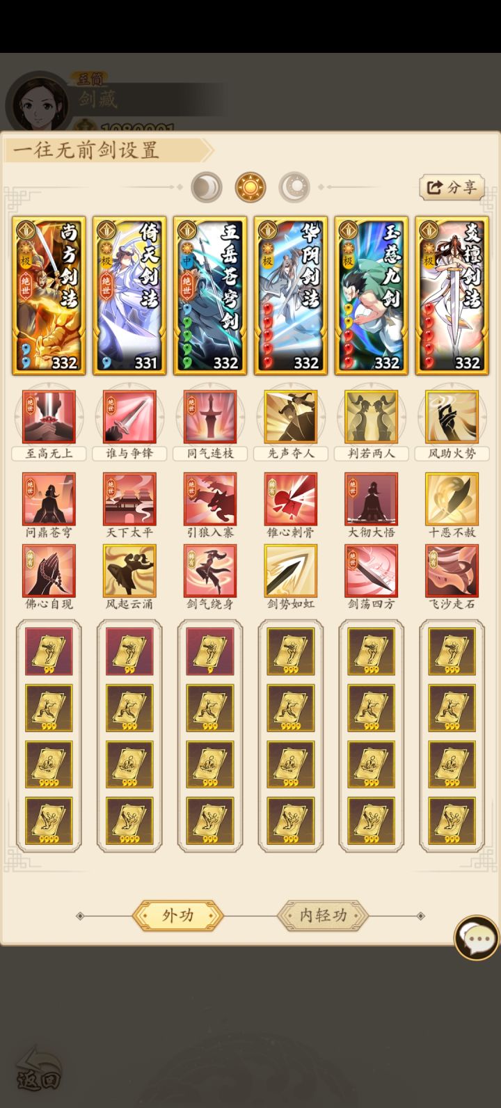 首先讲一下开服,如果你不买号的情况下,最好是有自己想玩的套路绝世开,比如我就是五岳开的。然后元宝只拿来买商店拉加速,切勿抽卡!!!然后心愿栏轻内栏先拉轻功翻腾术,不拉魅影神行,主要是不想浪费时间,魅影后面会换!外功栏就按照华阴玉慈炎壇的顺序拉到满。稀有心愿一直拉神行就行了,而且别管翻腾术比神行领先多少也主神行,因为阳剑不能断buff!这个很重要(因为倚天一旦触发而被点穴,力竭就会前移到华阴,华阴又不带剑荡四方,直接少很多伤害)在之后有时间的话华山一定要参加,这是重要的经济来源!前期运气好一个星期爆个几万花就可以用来买门派劵了,前面的话武当波斯可以不抽,也可以少抽一点,万一人品爆发呢??但是一定要留劵到峨眉,抽倚天,然后倚天抽完继续存到第一个高人独臂将军,全部抽完就可以!另外再讲武库点,不要换普通绝学,只用来开自己需要的招式!还有就是入侵,入侵声望跟抽奥义的劵要留,一张不能用,对于一些入侵招式,没有换的必要可以不换,留着声望等后面买闪卡,奥义劵可以等保卫城池抽绝世闪卡,我400抽出了两个绝世闪卡,目前我所有的剑系闪卡也买齐了,然后闪卡再多提一嘴,无论你玩什么套路,拳系闪卡都不用买!!!因为拳系没有多少四系伤害,你就是玩拳的也可以买刀剑奇闪卡加防御!!!最后再说一下装备强化跟经脉扎针,平均强化!平均强化!平均强化!重要的事情说三遍。不要追求完美,死磕一个!!