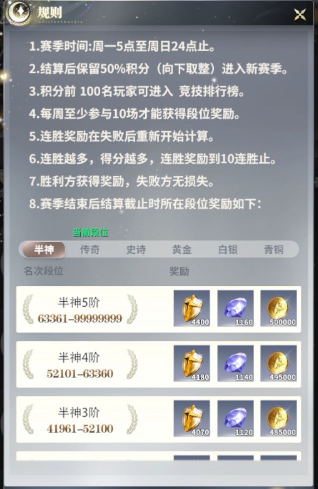 结算不会发邮件,自己点进去竞技场,自动领取奖励。