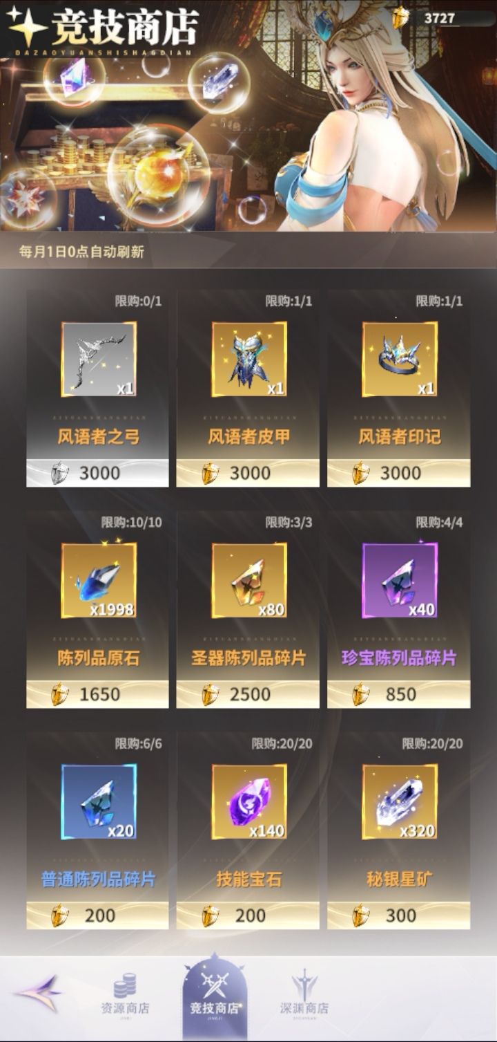 二,商店兑换建议:优先把风语者四个陈列兑换了,然后再把陈列橙色随机碎片也换了。