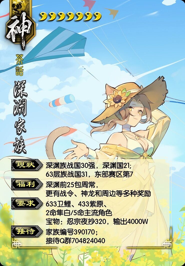 茶话主深渊国21,深渊63层+,族战国27;深渊输出4000W进审核群704824040联系我们进家族哦![[表情_送花]](https://img.tapimg.com/market/images/68b3dc8473df915ad2b85da5efef4f56.png)