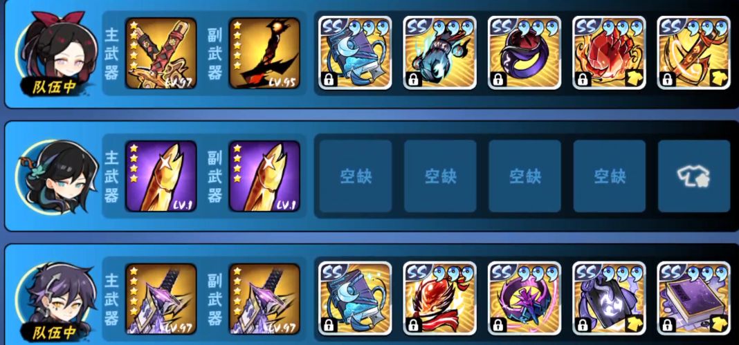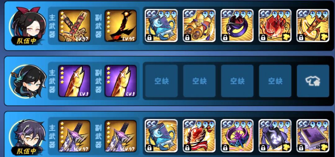 每人至少准备3套小队,没双戒指双魂印的用鬼戒/龙手替代,√相同时鬼戒≥龙手