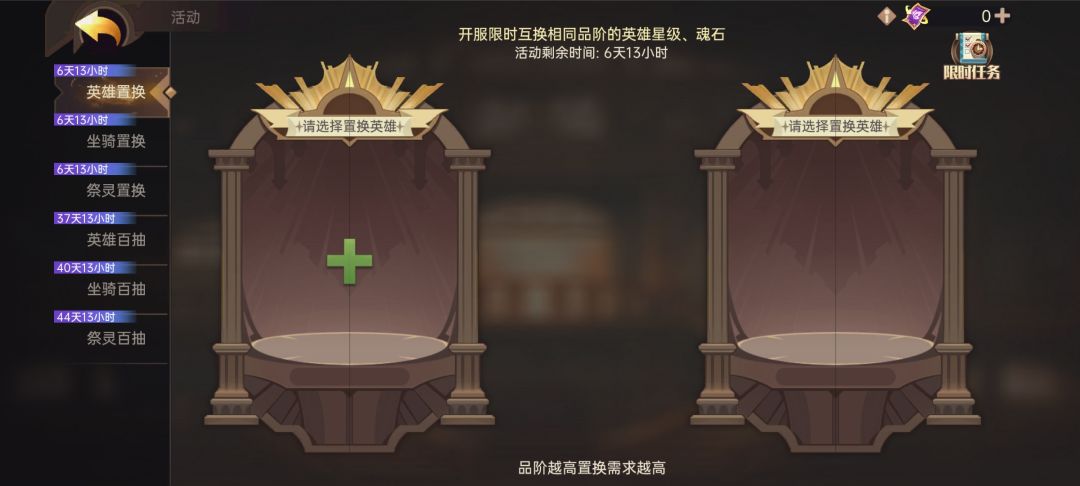 1:开局不用刷初始,除非你有强迫症,因为官方前期给的资源绝对够用,如果你没有拿到你想要的英雄,不要紧,因为后续商店里拿到积攒的资源一样可以购买你想要的英雄碎片,非常容易就能提高英雄等级,另外划重点,如果你没有拿到心仪的英雄,退一万步讲,游戏里还有置换活动,绝大多数的资源都是可以置换的。