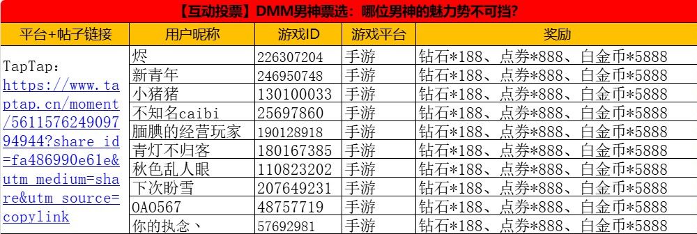 1.评论区留下你最爱的男神角色和理由,并附上【游戏ID】+【游戏平台】