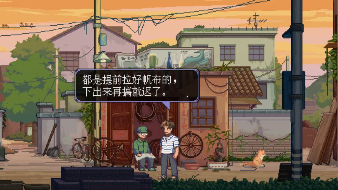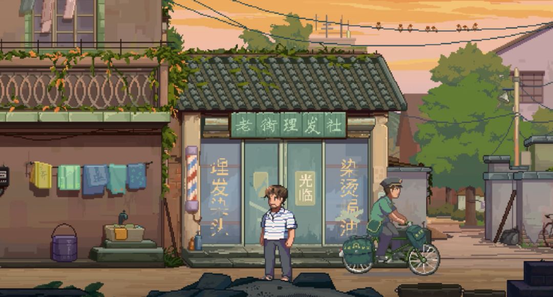 故事开始了,伴随悠扬的吉他曲调,以及一声邮差的自行车鸣笛,玩家操控覃牧南走在老街的路上。周围的环境令人怀念,木牌下的理发店,攀上老阳台的藤蔓,路边随意晾晒的毛巾和衣服,夕阳染红了黄昏……一瞬间就把人带回了90年代。