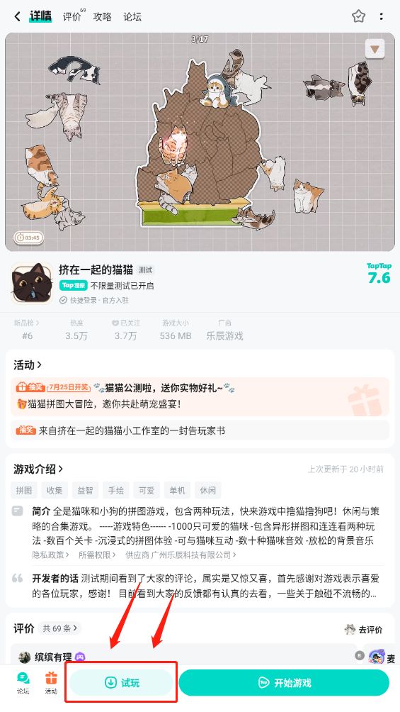(想要下载游戏的玩家请点击左侧的“试玩”进行下载噢,如图所示)