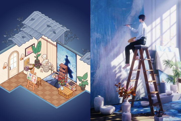 画是p图p的小鱼的一张海报然后油画化再切了个视角的~家具尽可能的还原了一下,祁煜,我的祁煜嘿嘿嘿嘿嘿🥰🥰🥰🥰
