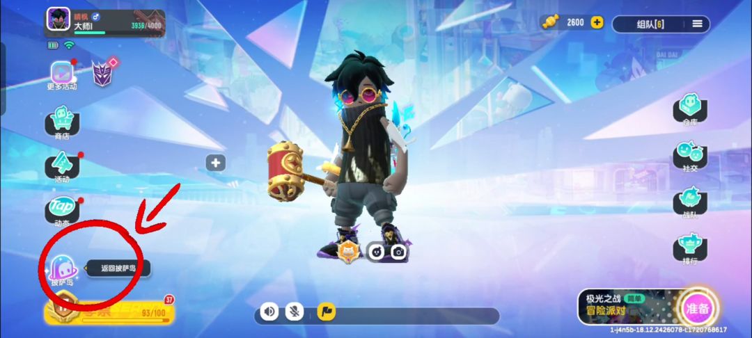 我们来到大厅后,会看到“返回披萨岛”(箭头所示)