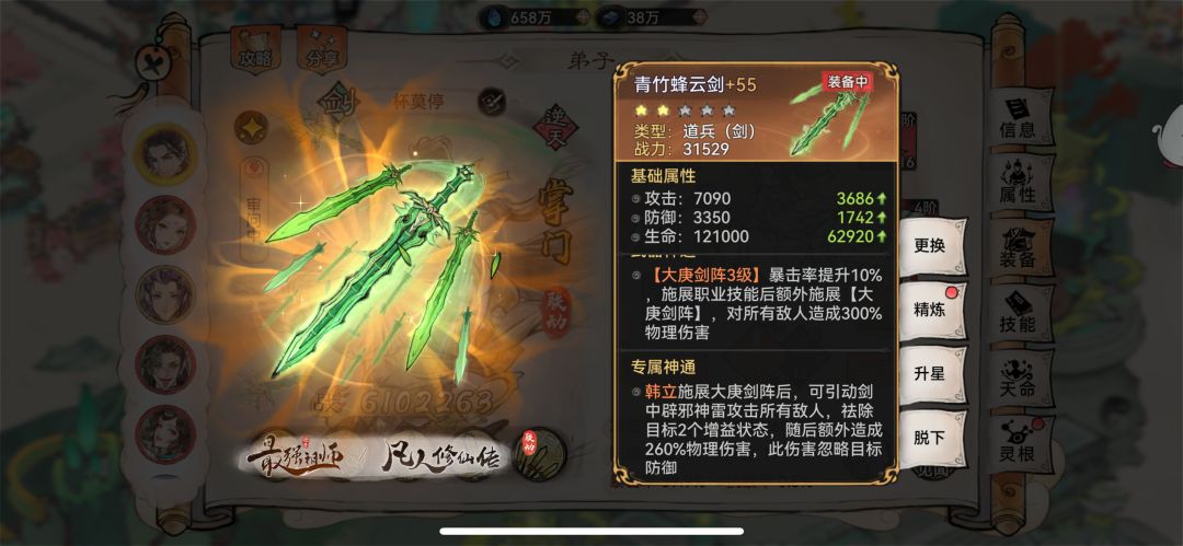 韩立的绝对核心就是他的本命技能【青元剑芒】以及专属道兵,韩立不是打高爆发的弟子,而是依靠本体技能联动天命剑盾和道兵技能打出多段伤害,所以想玩韩立道兵是必不可缺的。所以不想花328购买【青云竹峰剑】的话是不建议玩韩立的。