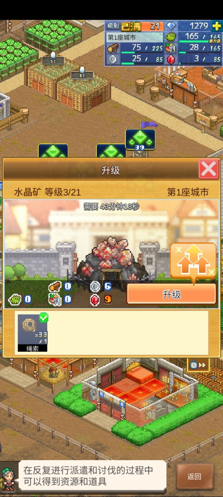 矿山每升一级提高一矿石上限,水晶矿升两级提高一水晶上限,所以升级矿山和水晶矿不亏的。