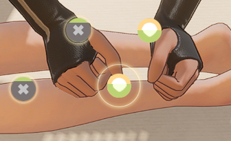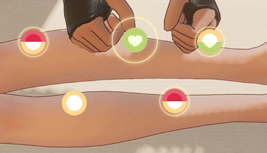 总结下来就是,使用锤能对附近点位进行影响,传导的进度为锤的进度的一半,而捏只能对单。两者完成同种颜色点位的按摩消耗的体力相同。因此按摩时先用锤影响多个点位,再用捏将未完成的单独击破。