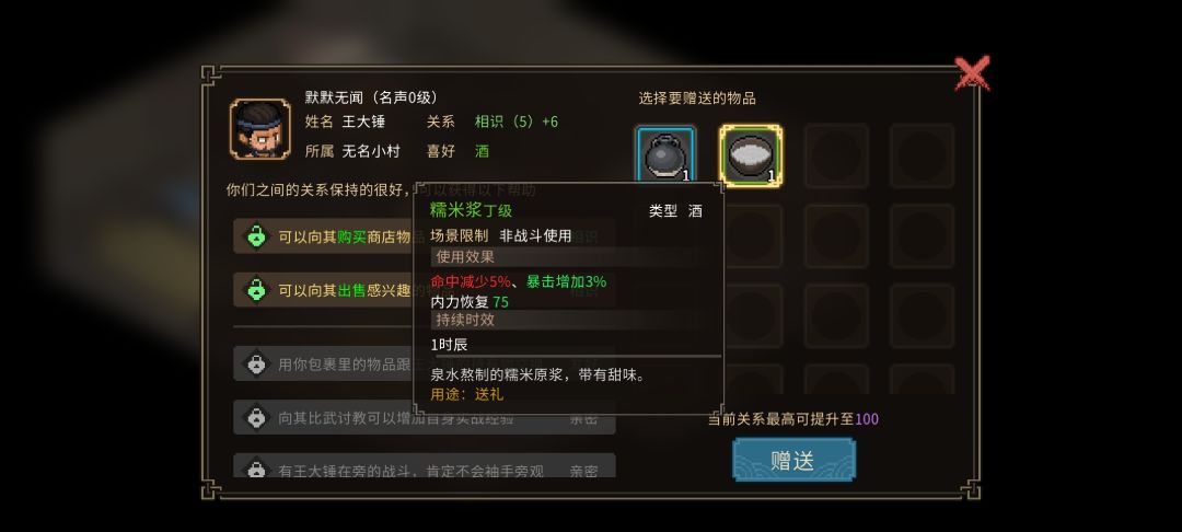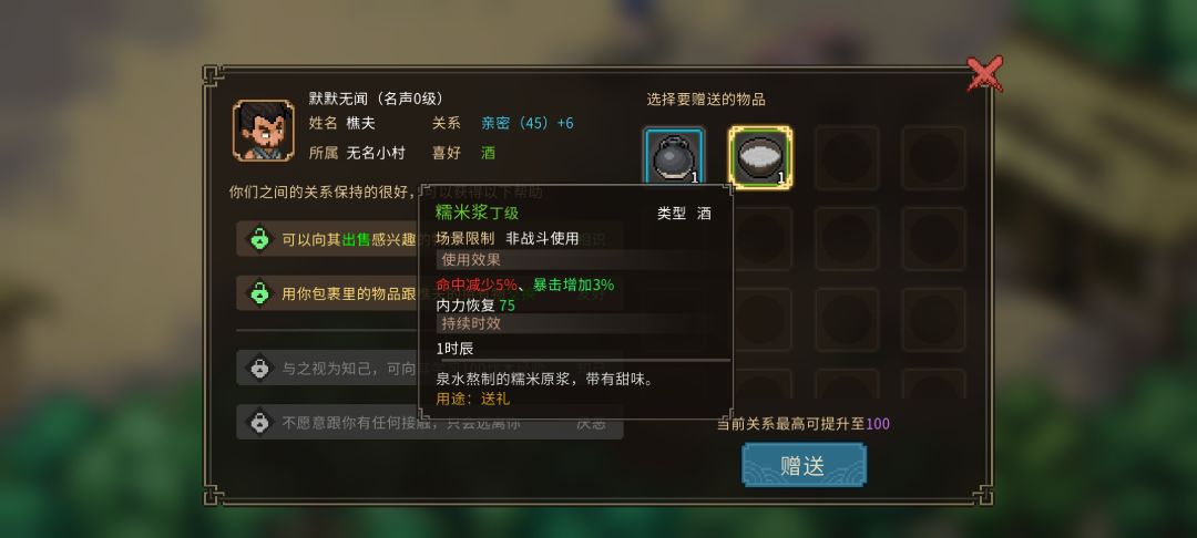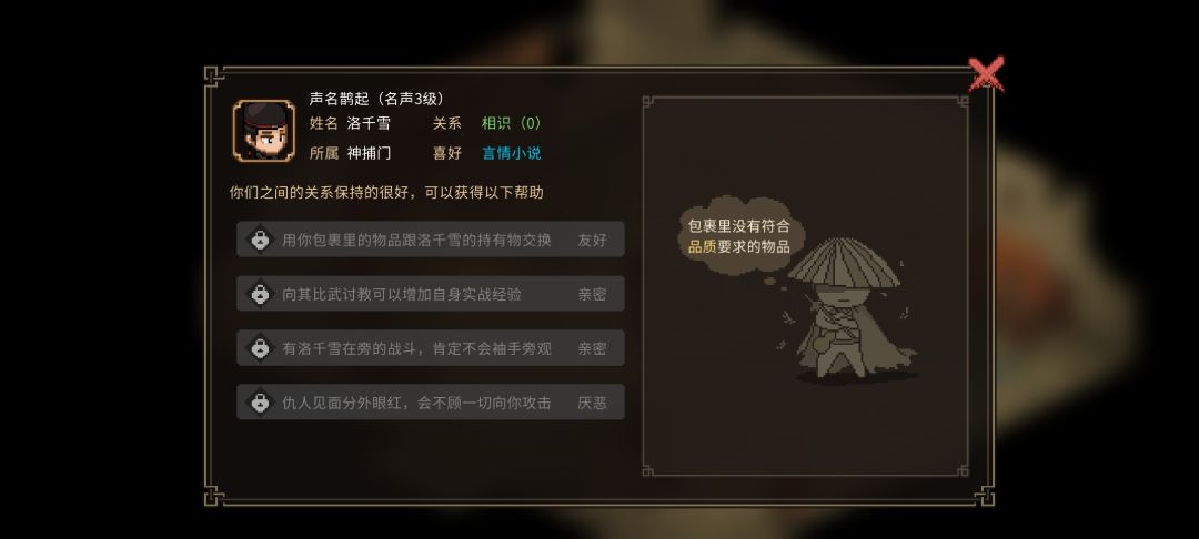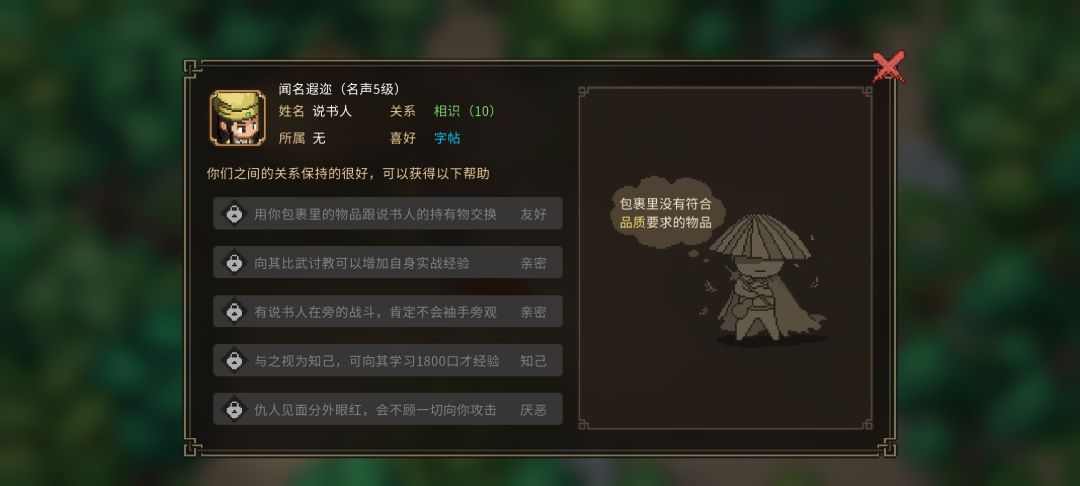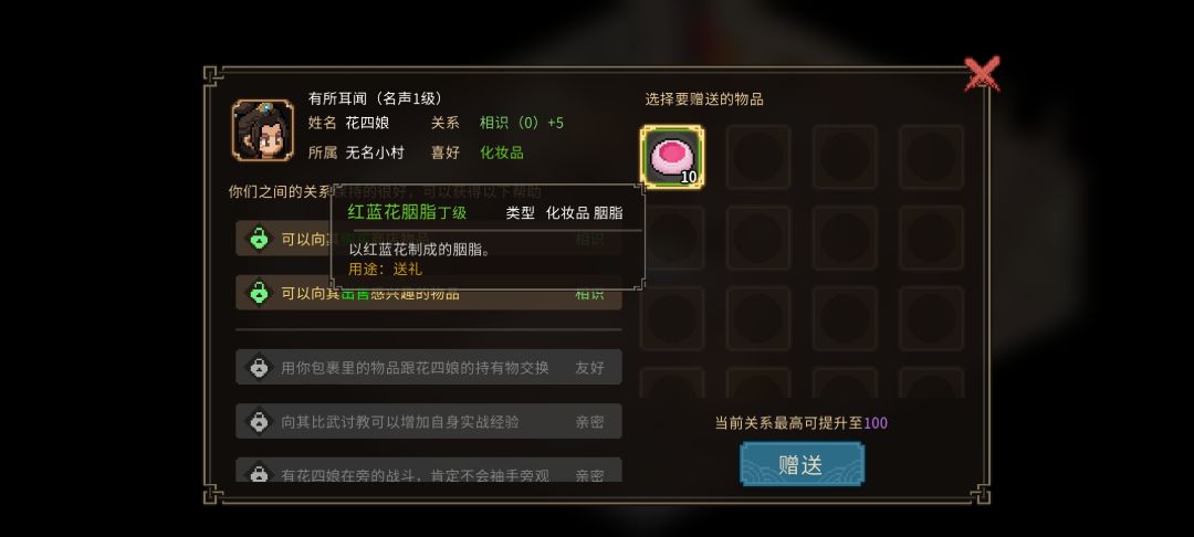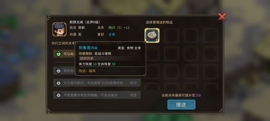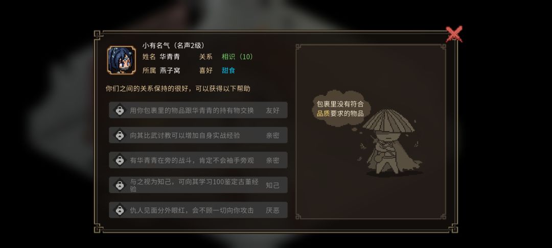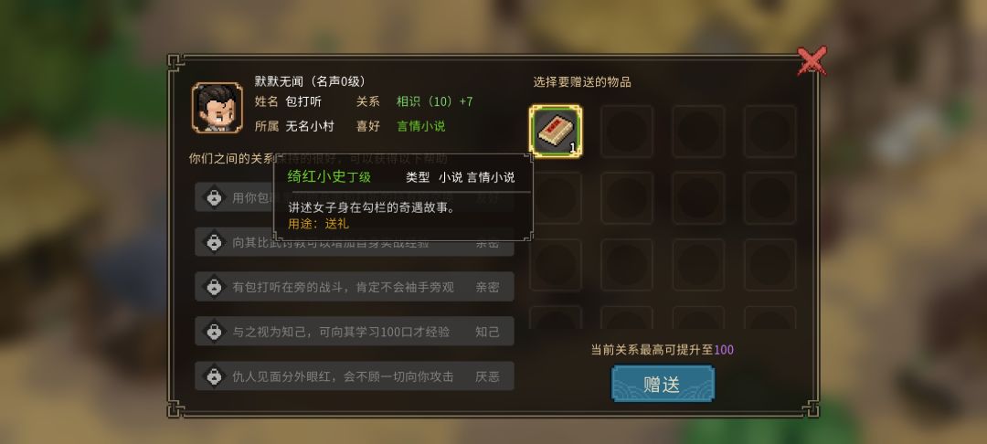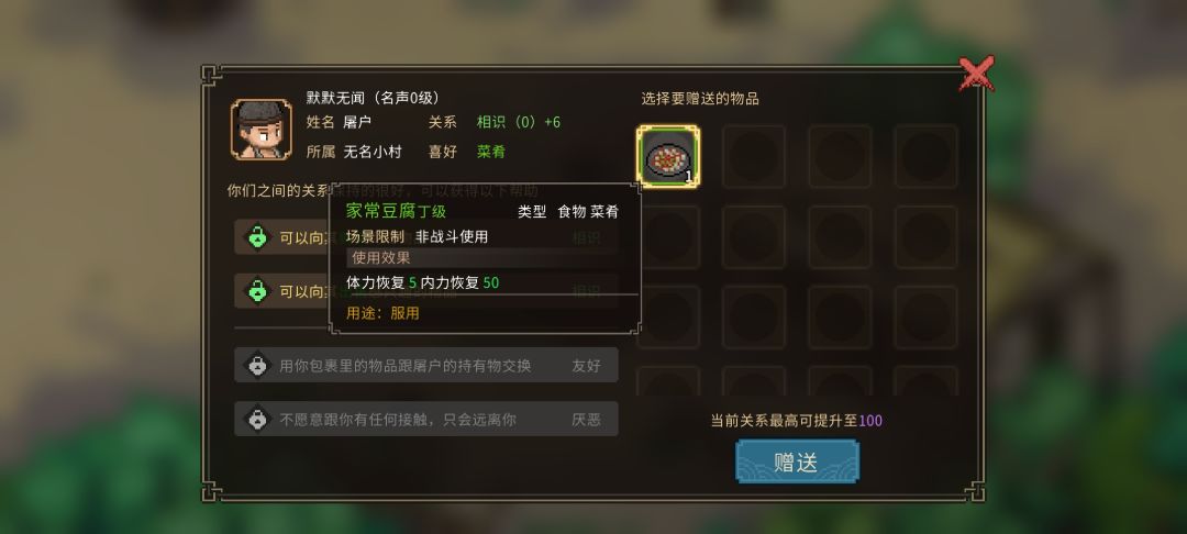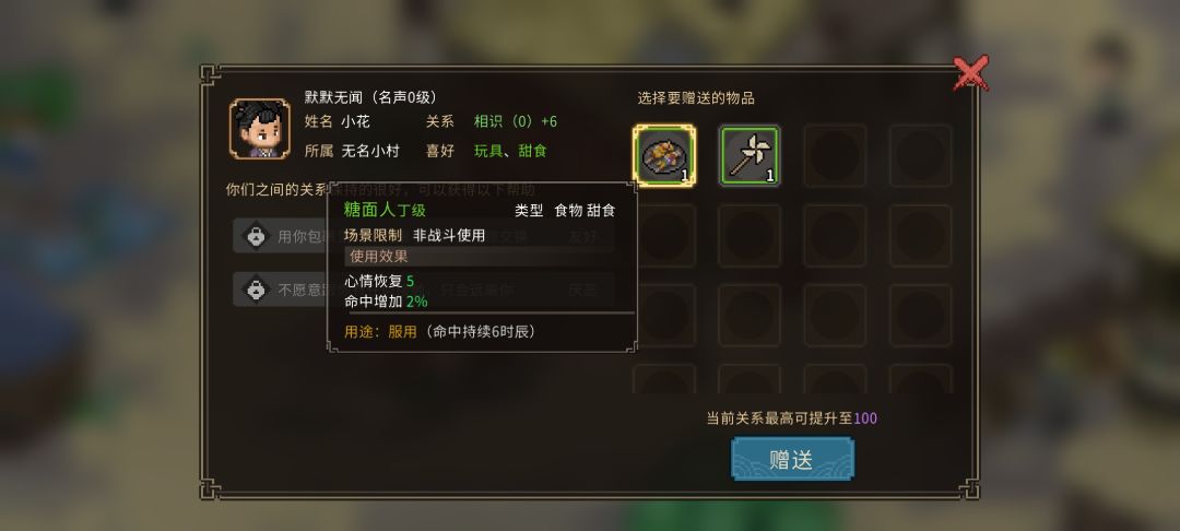 测试版npc喜好物品(好感度)送礼攻略