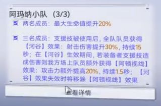 其他没得补充的,虽然官方默认给小太阳推荐的后勤是曙光小队,但对纯辅助位而言,阿玛纳小队也算常用后勤,顺带贴上阿玛纳小队和曙光小队的效果: