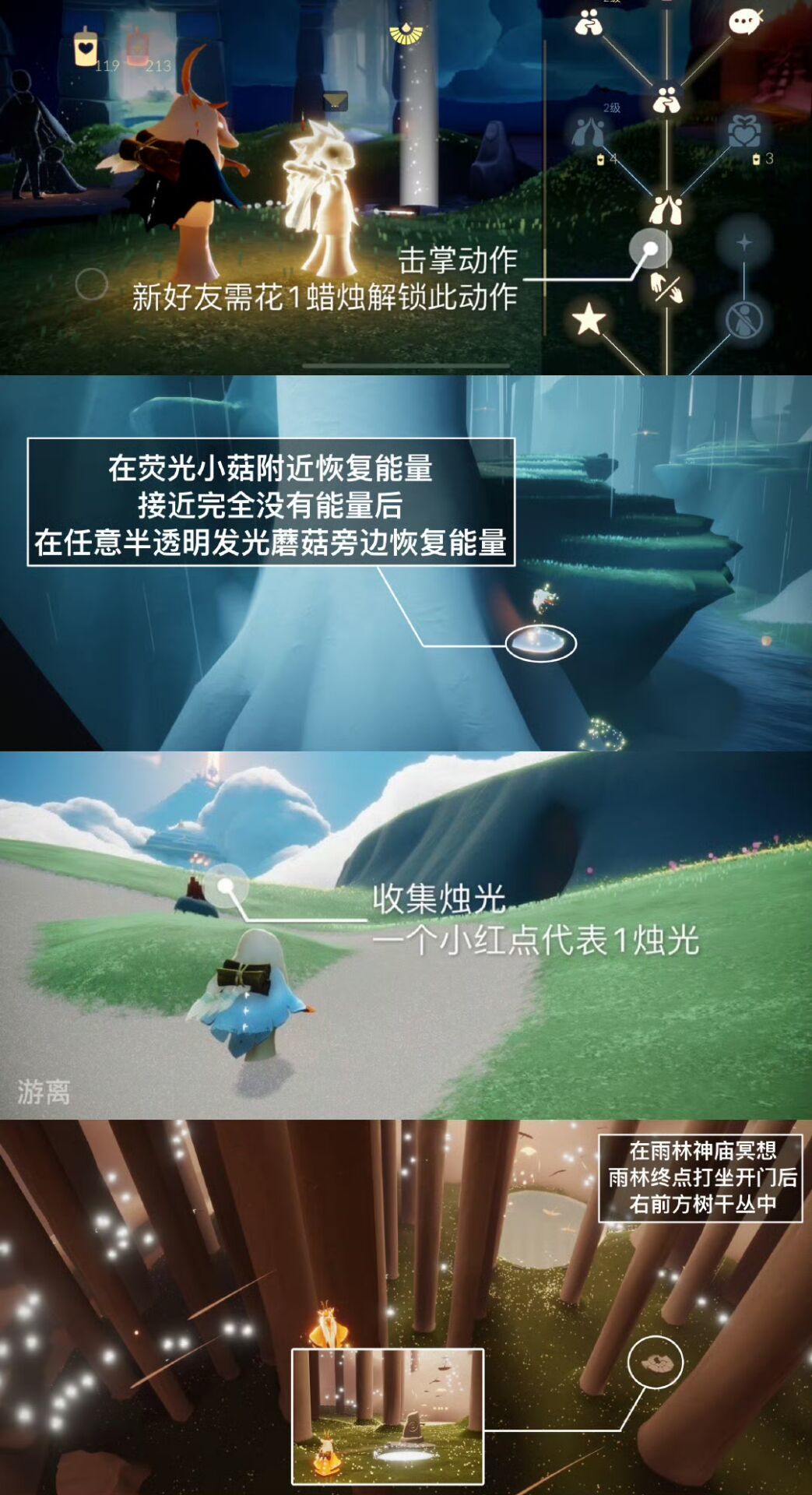 《光遇》游戏中每天的每日任务及大蜡烛的位置都不相同,玩家完成每日任务及收集大蜡烛都可以得到丰厚的兑换奖励,奖励可以用于兑换各种动作及道具,不过很多小伙伴不知道每日任务怎么做,又懒得自己去找大蜡烛的位置,我们汇总了每日任务的完成攻略以及蜡烛位置,一起来看看吧!