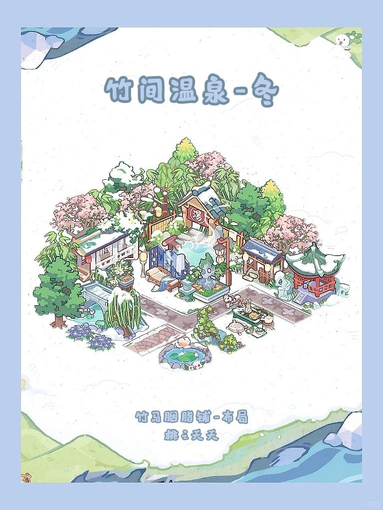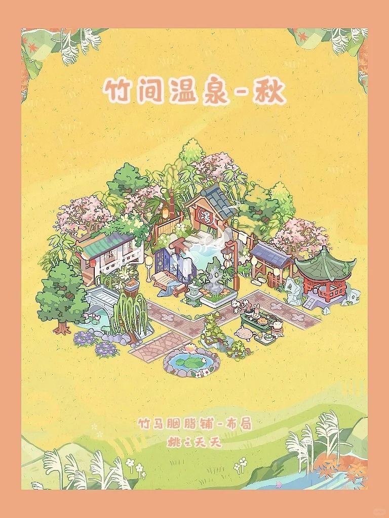 🏡这次看上了其中的温泉小屋,摆了一个竹间温泉,这样悠然自得的日子也太惬意了吧~又是想穿进游戏中的一天!
