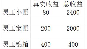 显然,每一种灵玉盒子所能开出来的灵玉都是大于体力价值的。具体是多少呢?请看下图: