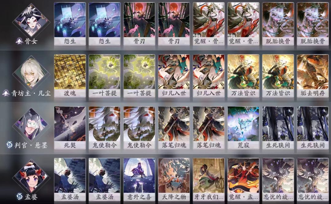 3.3、骨女卡组。5~6SSR,孟婆2张可以白嫖。