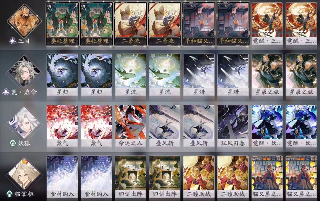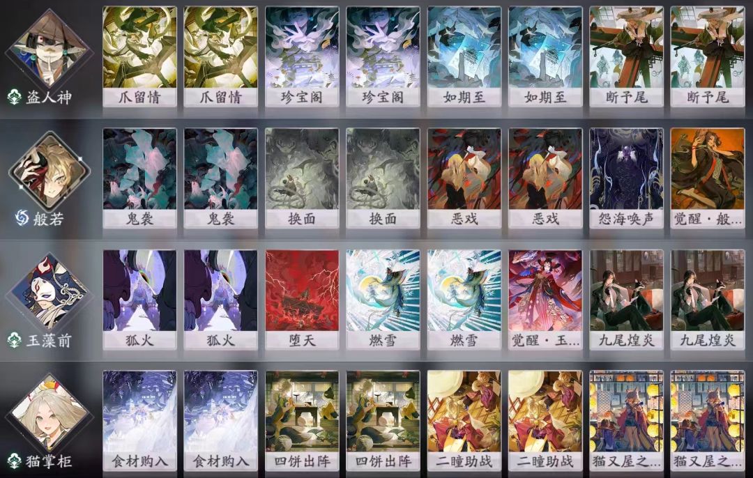 觉醒书翁可以只带1,满编云游,防止百目鬼,因为目前有盗人神的杂技瞳炎。