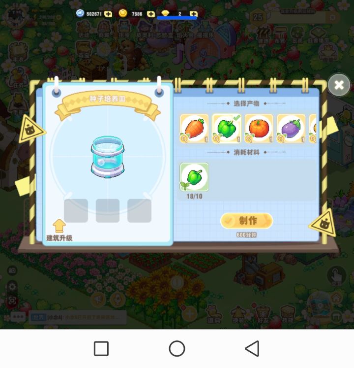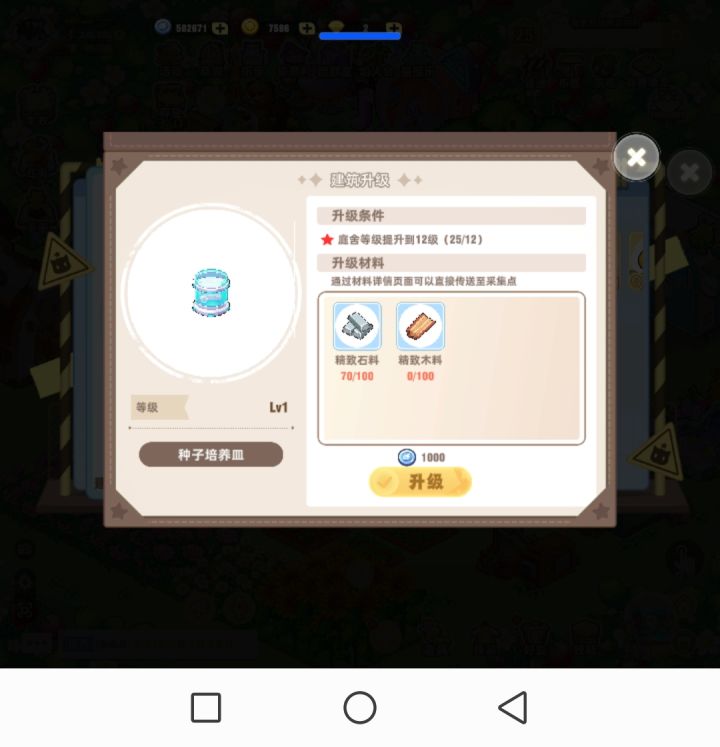 目前种子培养皿最高等级是2级,需要100石料,100木料,1000银币来升级。