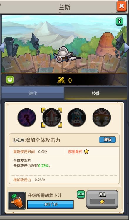 - 技能效果:全体友军的全体攻击力增加0.23%。