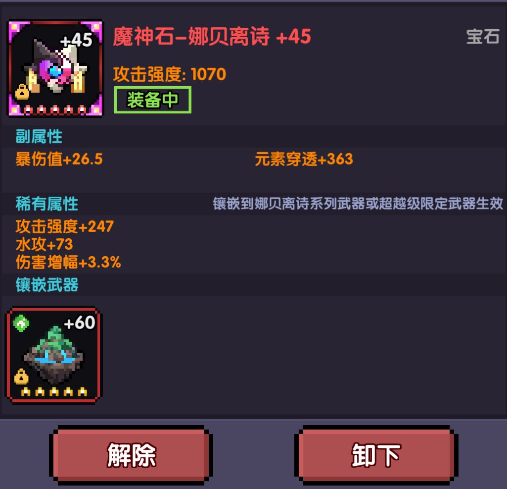 通过洗1~2个水攻暴伤宝石将面板元穿压到2900~3000即可。