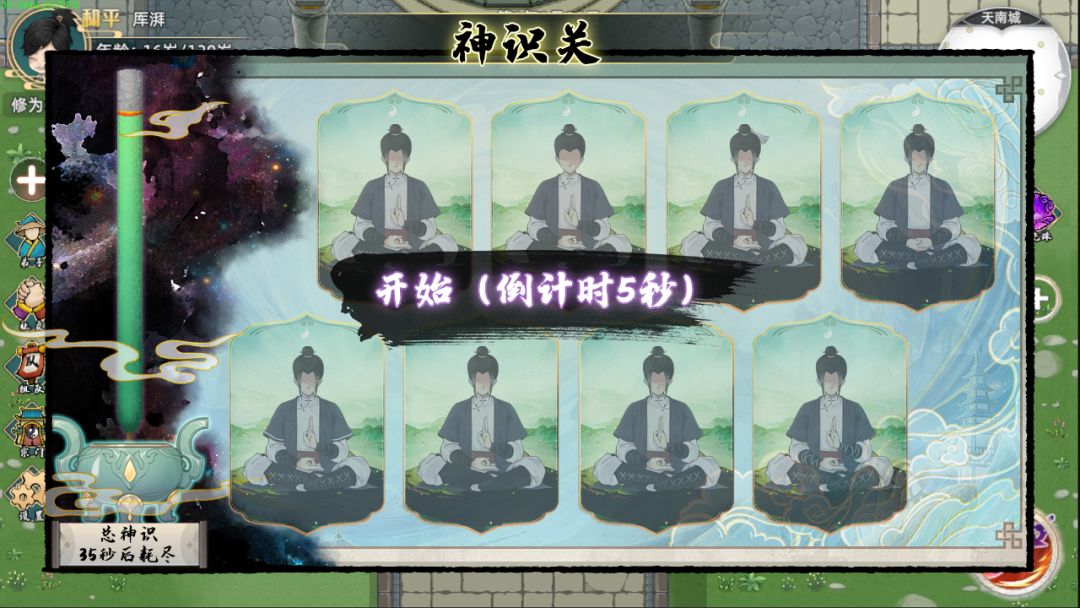 玩家开始神识关后,会计算玩家的神识上限,得到一个神识关持续时间、神识关选择次数