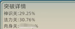 会详细计算每个关卡的几率,当采用几率突破时,就非常方便,肉身关不展示啦