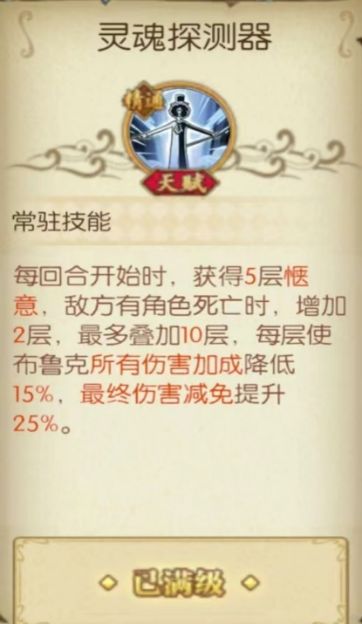 核心天赋:灵魂探测器每回合获得的惬意在后面奥义时会起到作用,布鲁克的输出体系就是围绕着惬意展开的。
