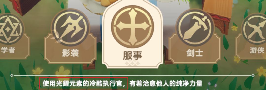 首先游戏对于服事的定位从来都不只是辅助,不仅仅是单存的奶妈,这点选择从选择职业界面、官方职业宣传以及匹配就可以看出,界面里面中都强调了服事有着不错的输出能力。并且选职业的地方,也并没有明确区分辅助,输出职业。说明官方的想法是支持服事玩家双修的。不要张口闭口就奶妈,辅助。不要主观的先入为主,把自己主观臆造认为的奶妈,坦克强加在服事 ,剑士身上。