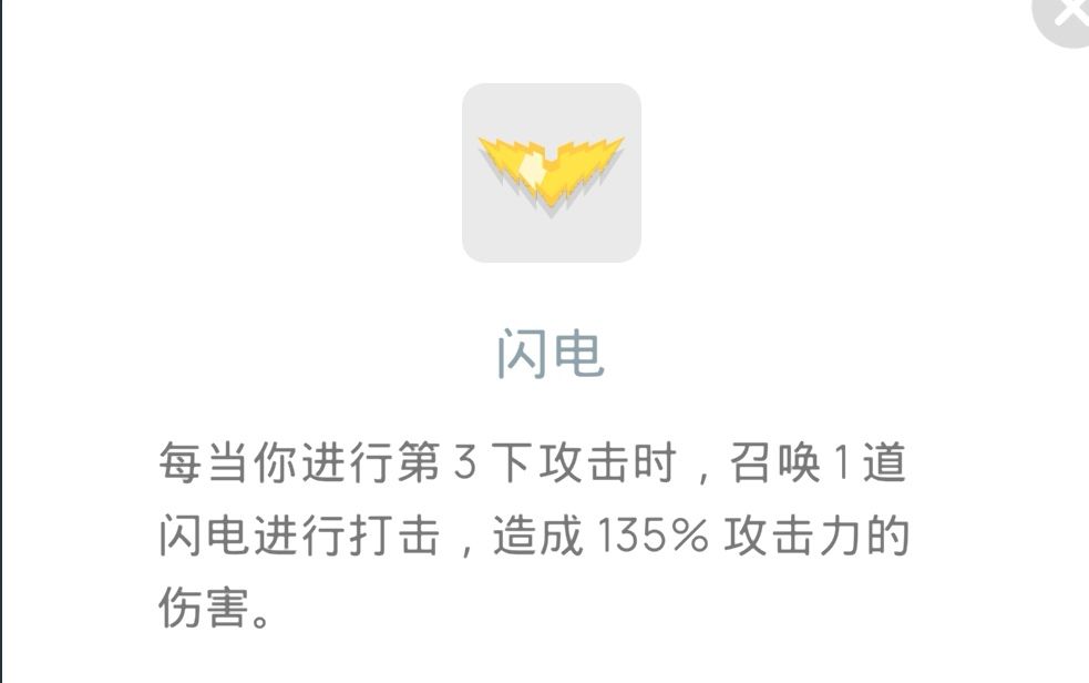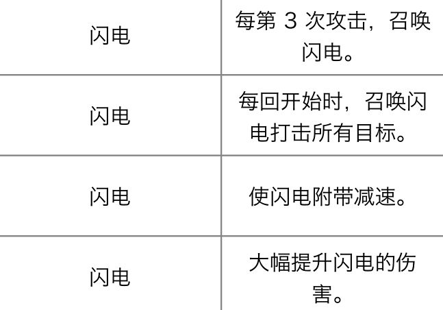 闪电:清图神器,两个人同时选择闪电可以实现快速清图,适合速通玩家,普通玩家只有个1级也可以增加自己的伤害