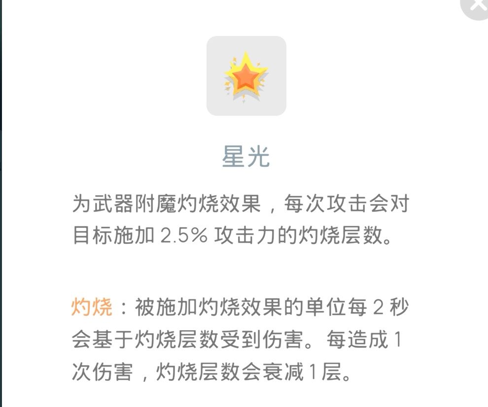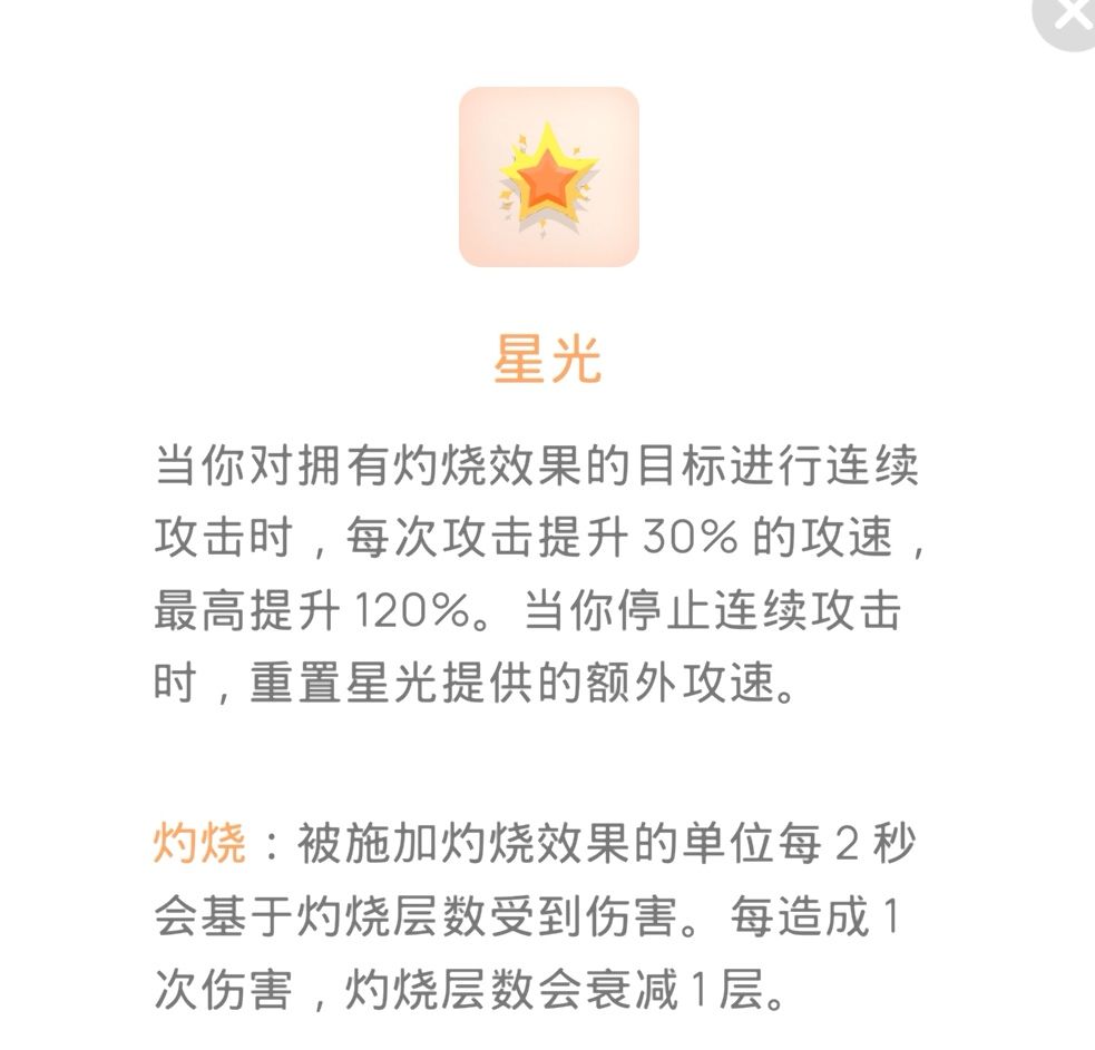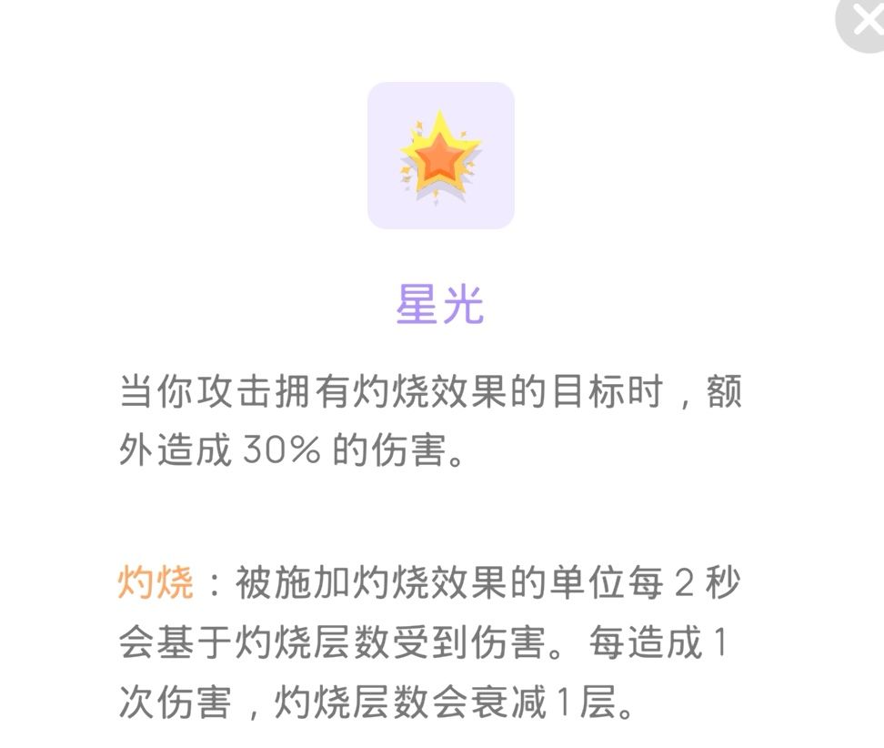 星光:玩灼烧buff的不二之选,普通玩家可以选到1级或者2级,玩火的可以拉到4级