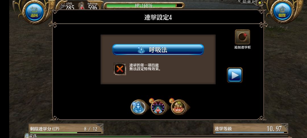 呼吸法可更改为冲击波,任意1蓝起手