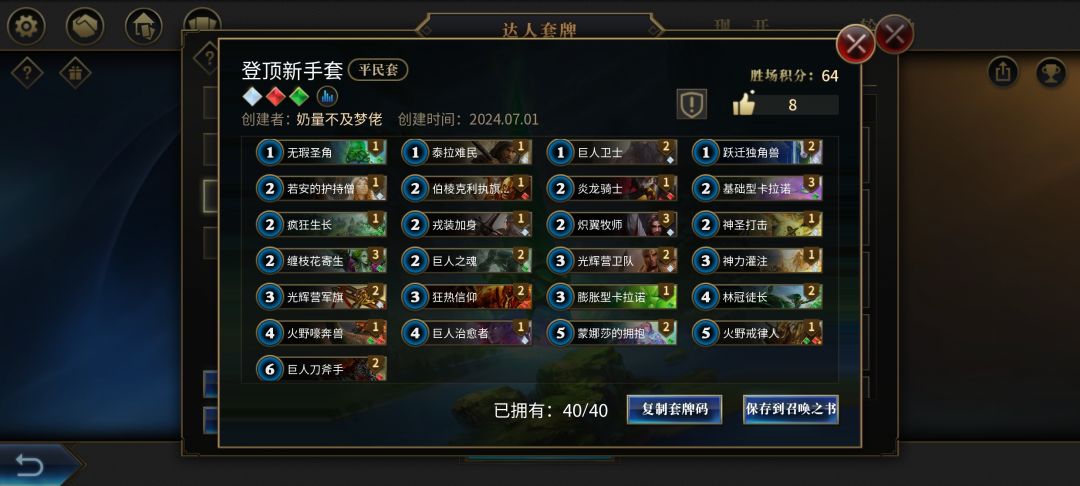 毕竟秘境软控太廉价了,快攻没补牌,对控制,场面很难输出,不带橙卡战神和泰拉仪式的情况下,也只有冲666或化灵灌注才能补足伤害和胜率,不带不朽(风物卡包不可合成)、乱斩(紫卡)、不熄源灵(风物卡包不可合成),综合能力还是短不少。