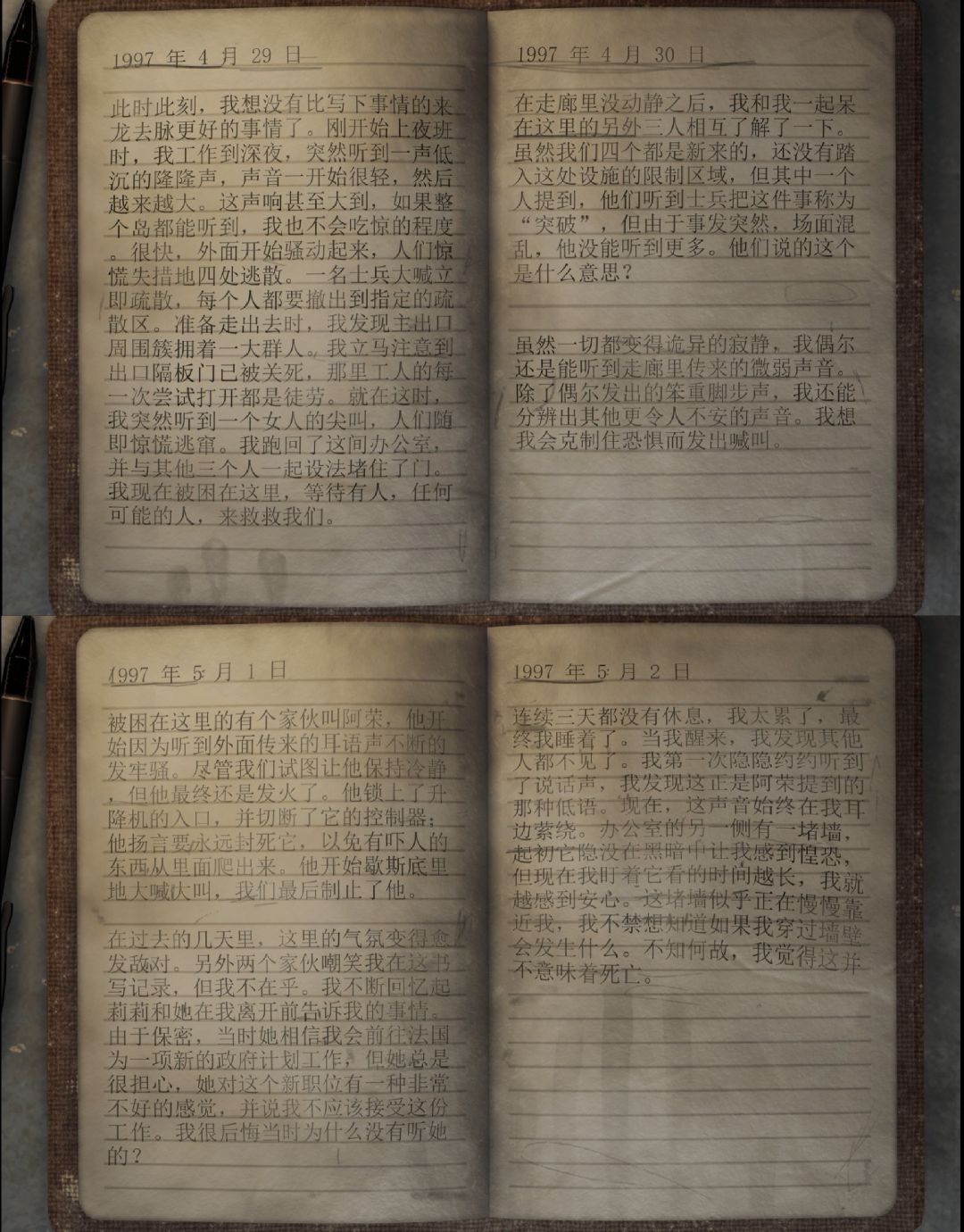 回到游戏上,这一部相比之前三部难度明显提升,线索和结果的对应上会有所偏差,所需时间也更久。游戏的第一视角加上场景的逼真,让玩家有身临其境的感觉,会带入到空荡、灰暗、未知的场景中,为每一扇门背后的秘密提心吊胆。是一部值得好评的佳作。(第3章的游戏详情页还没有,就先发到第2章的论坛里吧。)