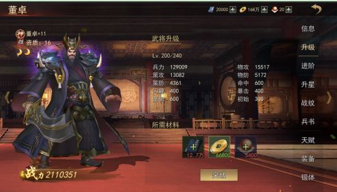 3、武将升星需要消耗武将升星卡和武将本体卡