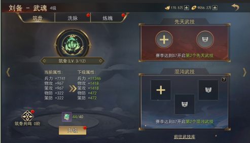 3、筑骨升级消耗筑骨丹,筑骨丹可通过皇陵地宫、运营活动获得;全体武将筑骨等级达到指定等级可激活筑骨共鸣。