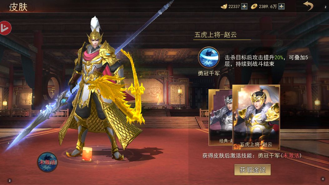 简介:解锁皮肤可获得强力的武将技能和全新的武将外观