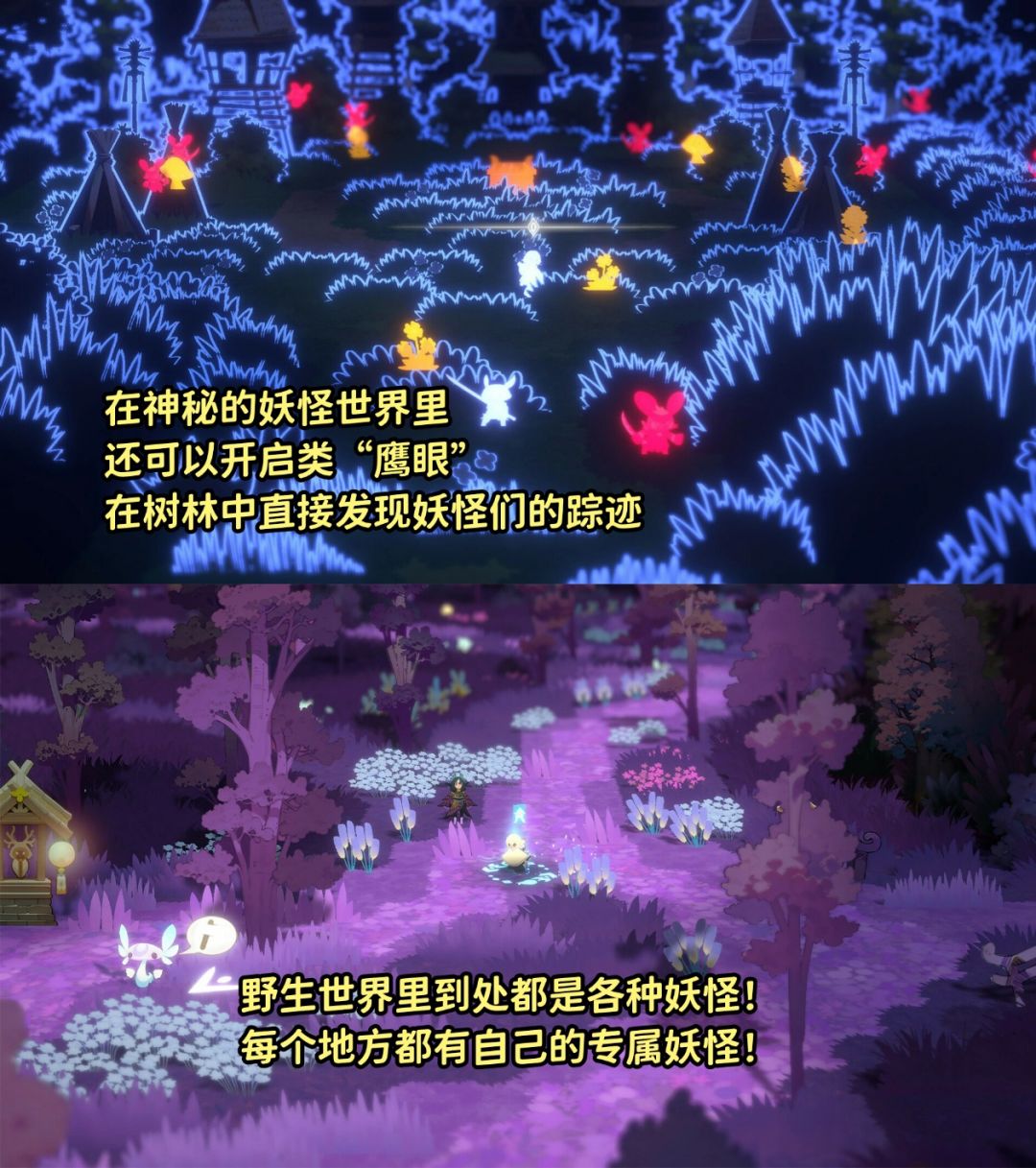本作栖息着200+种丰富多样的妖灵,收集玩法上让人眼花缭乱!!他们有着不同种族、属性和技能,妖灵天赋使每只妖灵都独一无二。更有一些变异的特殊珍惜妖灵!!随着战斗经验的积累,妖灵还能进化成出更强大的形态,赶紧去野外邂逅你的强力伙伴吧!!