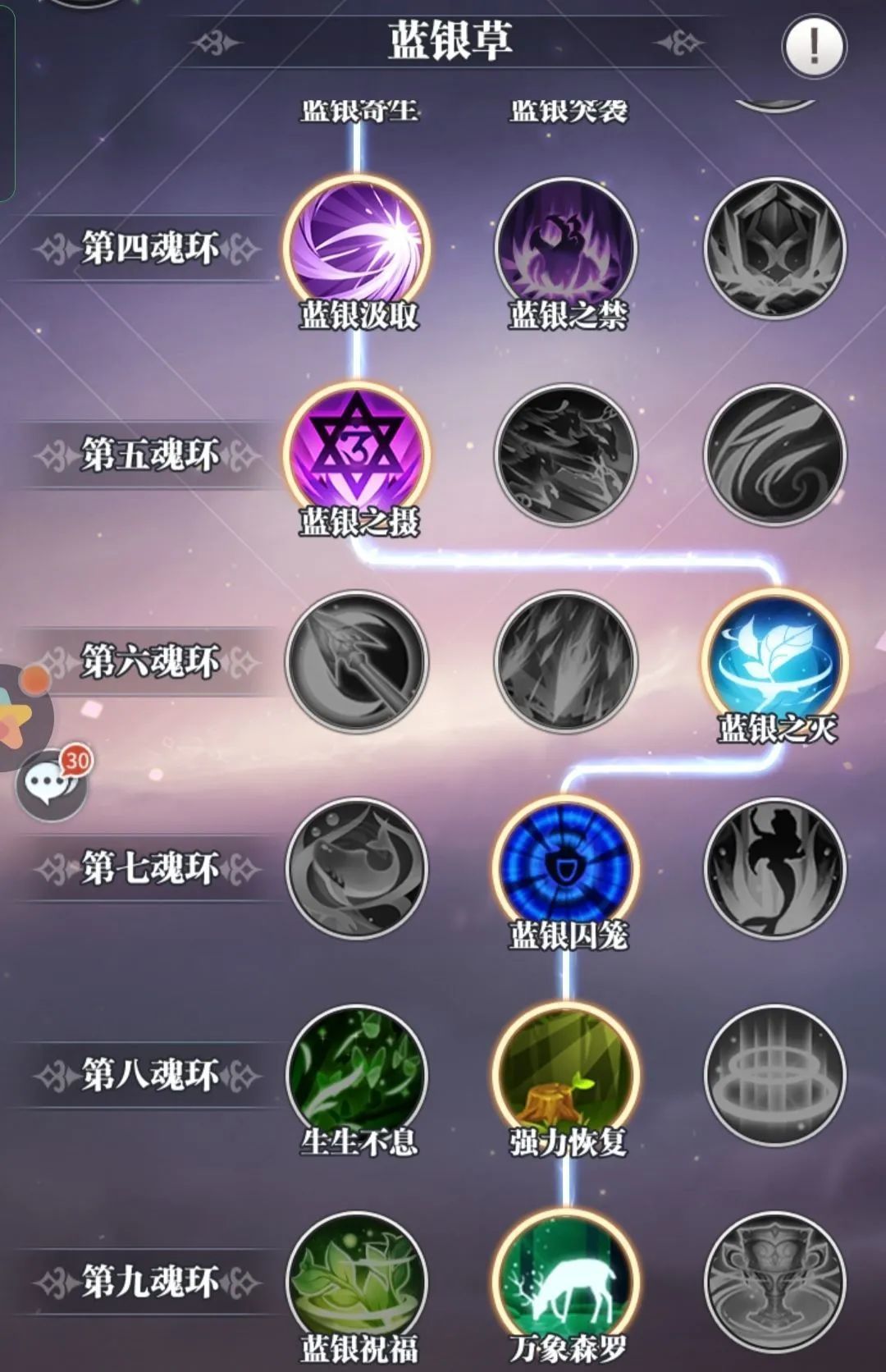 02 主角武魂选什么?首推蓝银草,蓝银草作为主角唯一的控制武魂,重要性远远大于其他武魂,主角必定先手的特性可以让你在对战中占得先机。具体的出招顺序以及技能加点如下图: