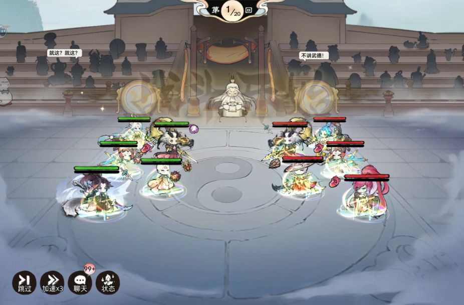 我目前只带了一个风魂,主要是希望南宫PK 时能多打出普攻,等血刀功法出来会考虑加一个血刀(用全队30%当前血量向对方全体造成70%真实伤害)。这样基本南宫出手就是全体伤害