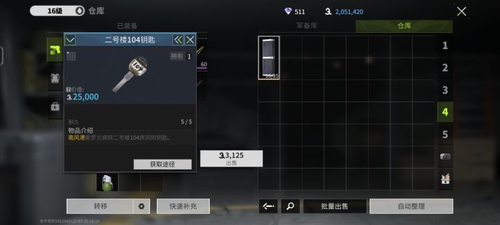 从特遣人机身上摸的,品质极低,不能上寄卖,只能三千卖给联络人。去游戏内按钥匙说明又找不到钥匙房