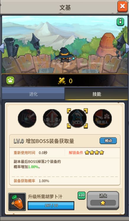 - 技能效果:副本最后BOSS掉落2个装备的概率增加1.00%。