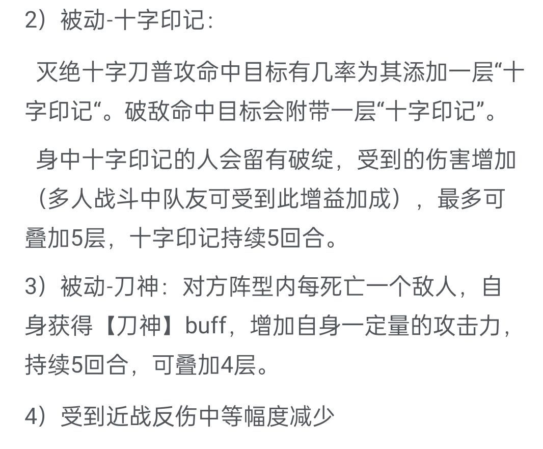 【3】被动刀神,杀人剑,敌方阵营死亡加攻击。