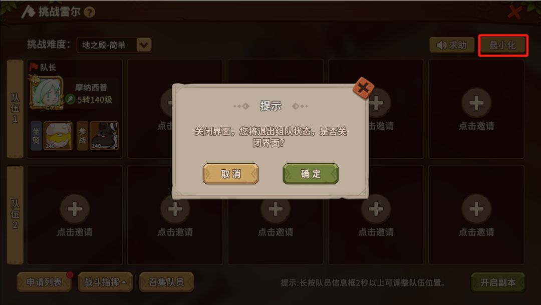 a. 组队状态下,关闭界面会退出队伍,电脑端可按L键,关闭组队界面后,提前进入语音频道。手机端可点击最小化,进入语音频道。