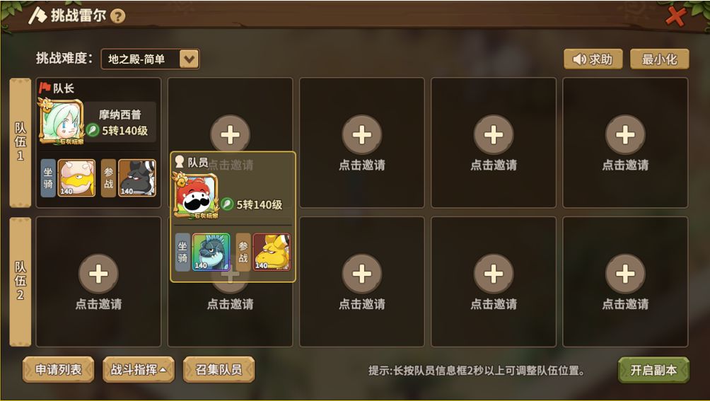 b. 组队状态下,队长长按队员信息2秒(非头像区域),可拖动队员更换位置。